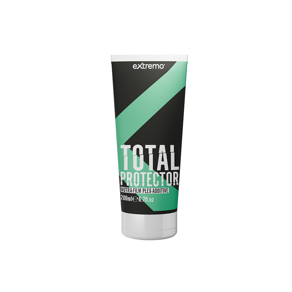 Total Protector Nutra-Film Plex neutralizes histamines, soothes, and nourishes, generating a polymeric network protecting the amino acid bond that protects and soothes the skin while supporting and reinforcing the hair structure during chemical applications, protecting aminopeptide bonds from chemical aggression. It can be used before, during and after chemical services.