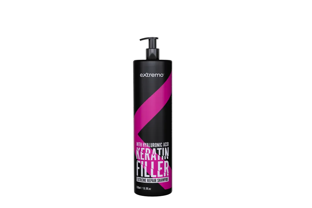 Shampoo con acido ialuronico e cheratina, dona volume e ristruttura la fibra capillare. Adatto per capelli fragili e trattati.